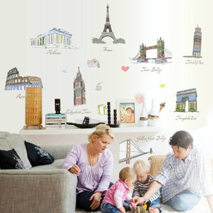 Достопримечательности на английском Стик 90*60 см, клеятся произвольно